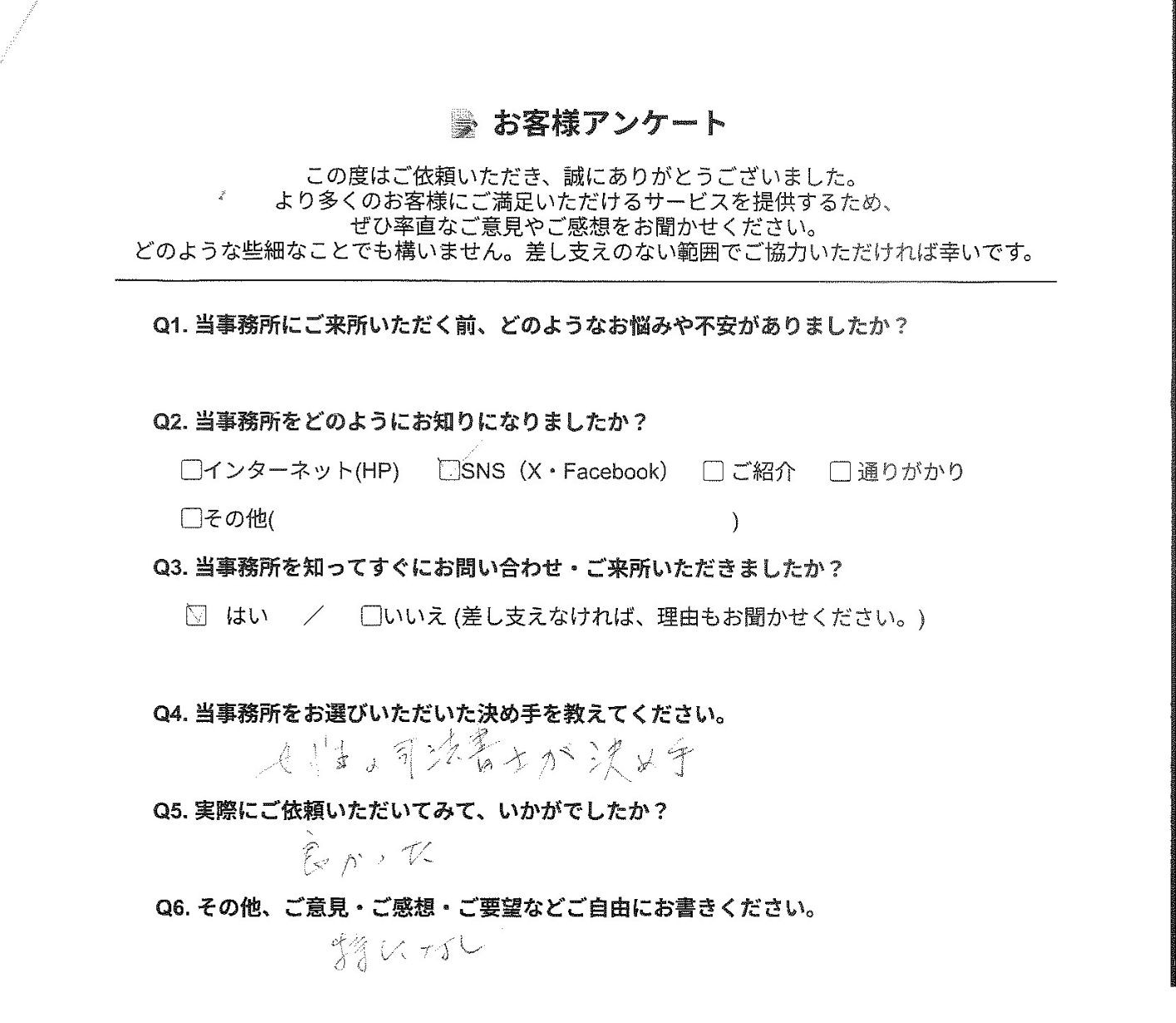 この度は、当司法書士事務所をご利用いただき、誠にありがとうございます。 女性司法書士がいる点を評価していただけたこと、大変嬉しく思います。